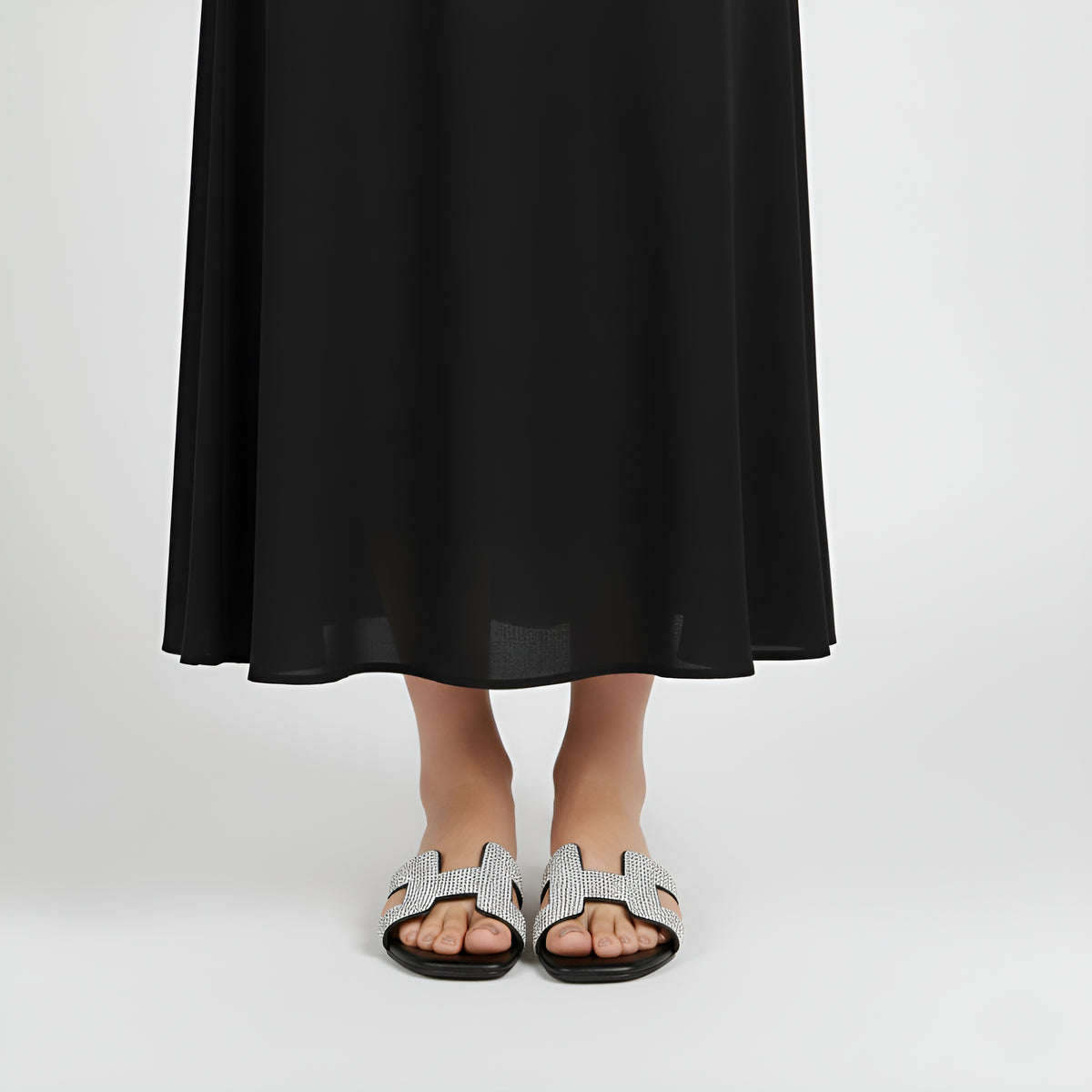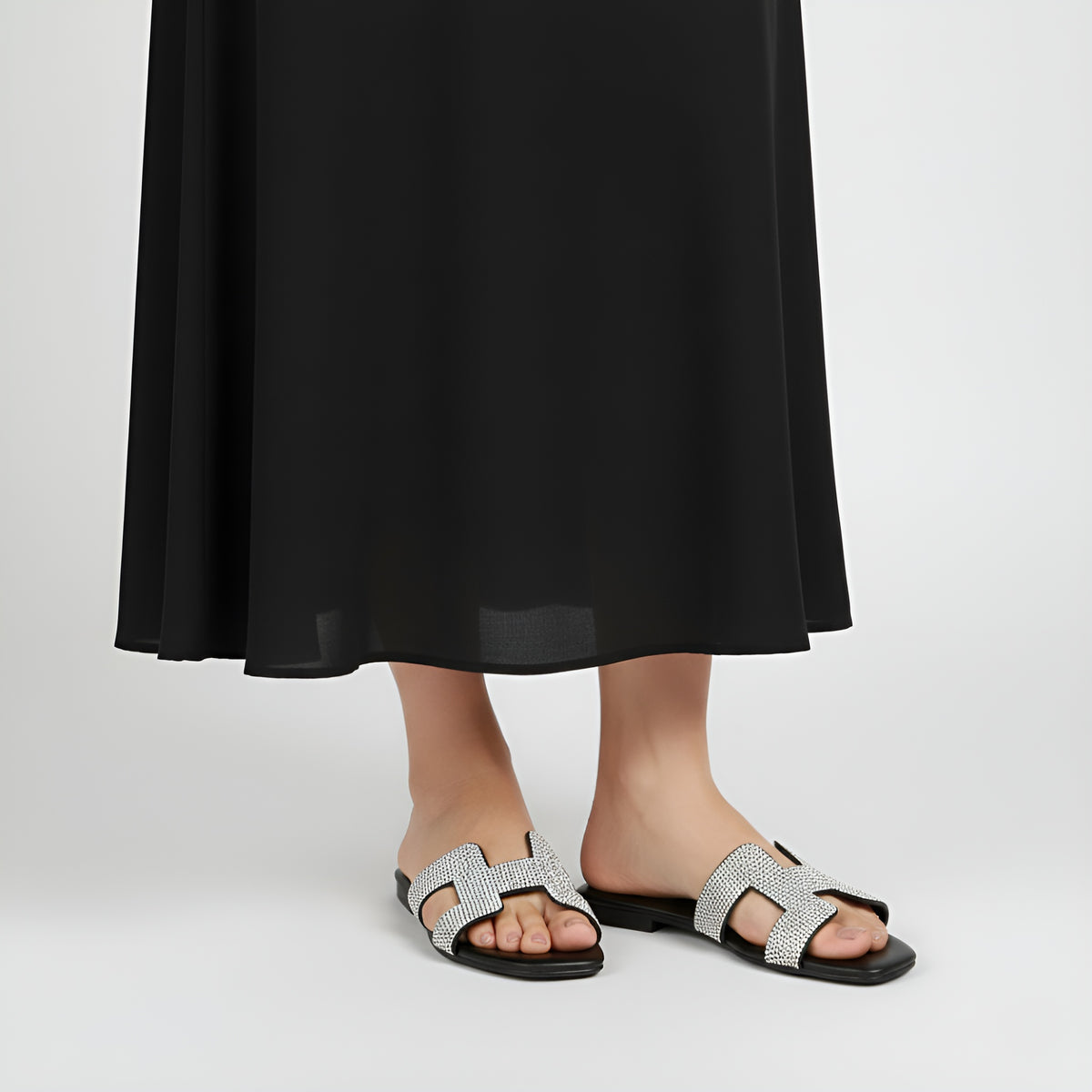 Shimmer in style with these Glitter Slip-On Sandals. Featuring a sparkling embellished strap design and a comfortable padded insole, these sandals combine elegance and comfort. Perfect for festive occasions, casual outings, or evening events, they’re the ultimate choice for effortless glamour.